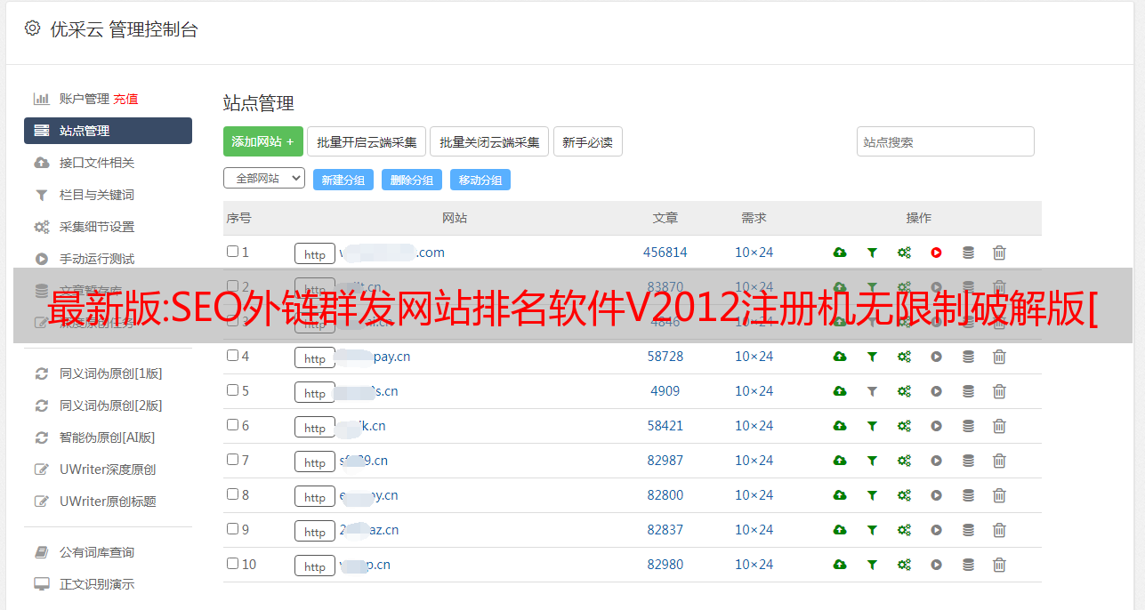 SEO外链海量网站排名软件V2012 keygen unlimited破解版【整合营销】下载地址