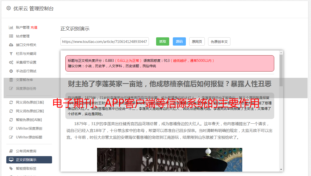 电子期刊、APP客户端等信源系统的主要作用