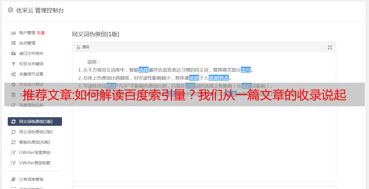 优采云 发布时间: 2022-12-23 21:38推荐文章:如何解读百度索引量?我们从一篇文章的收录说起
