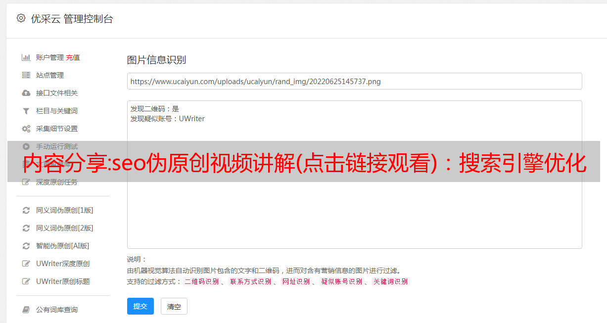 内容分享:seo伪原创视频讲解(点击链接观看):搜索引擎优化推广