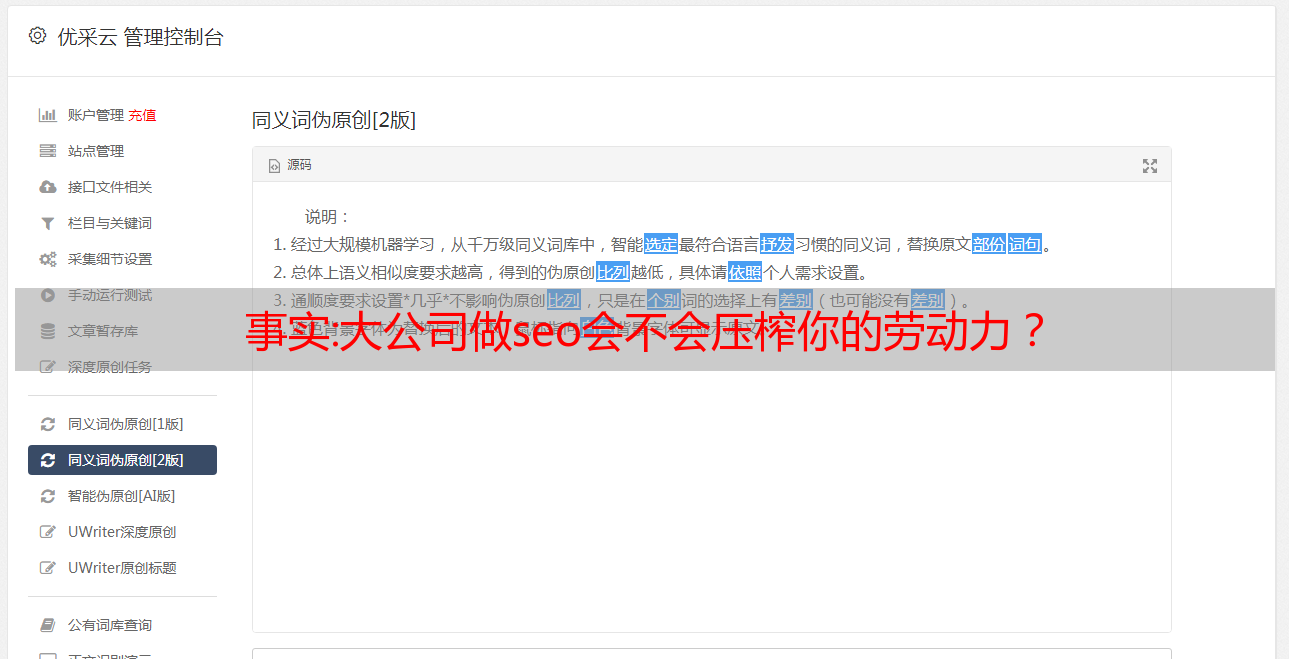 优采云 发布时间: 2022-12-24 23:09事实:大公司做seo会不会压榨你的劳动力?