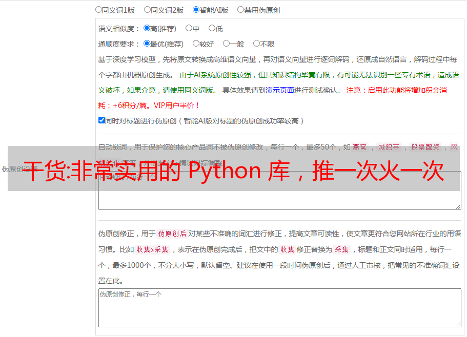 1、伪原创工具全球首创:本地和网络两种不同的伪原创方法;
