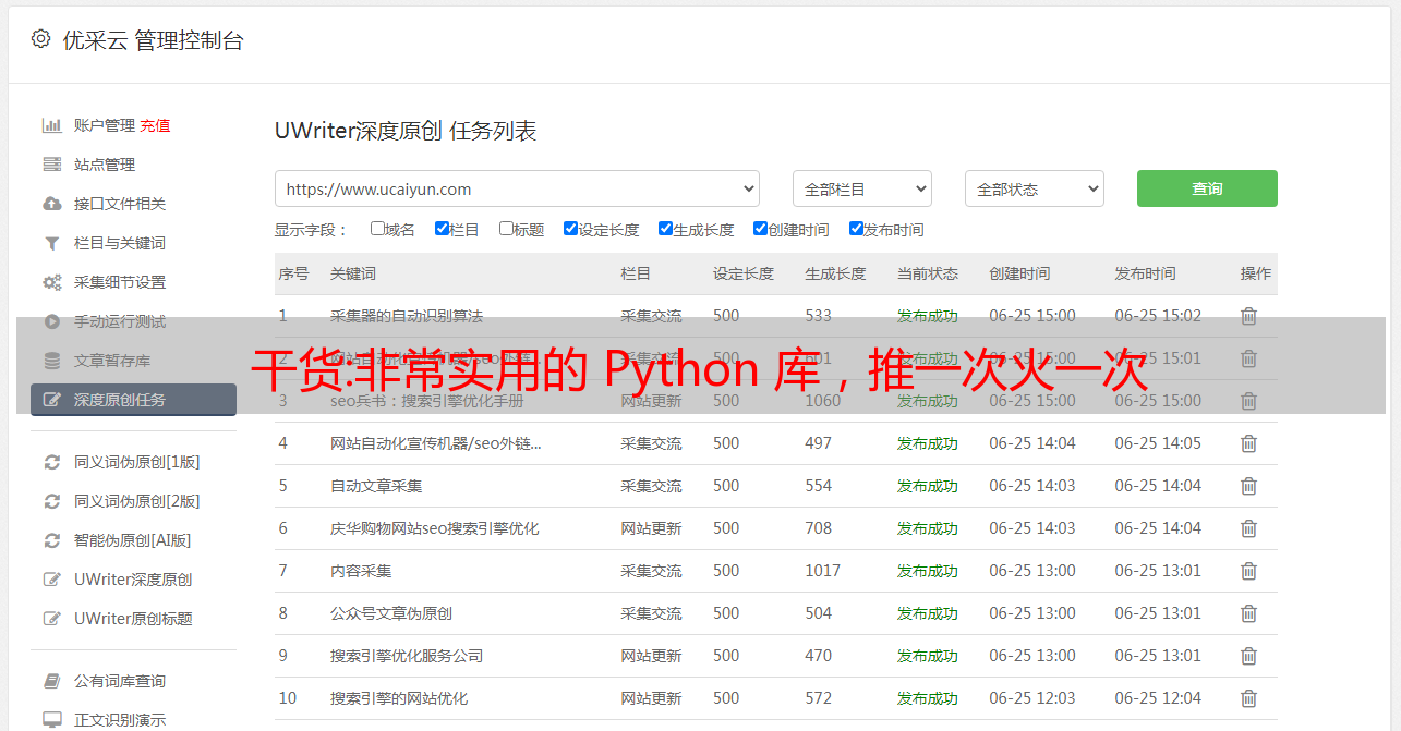 Azurite SEO伪原创工具是一款高级SEO工具,可以生成原创文章和伪原创文章。 使用伪原创工具可以制作出全网独一无二的伪原创文章,支持中英文伪原创原创文章。