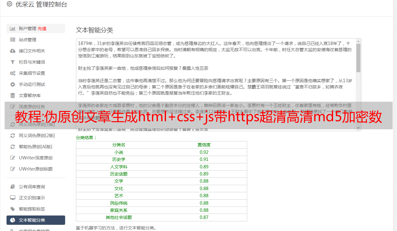 教程:伪原创文章生成html+css+js带https超清高清md5加密数据库