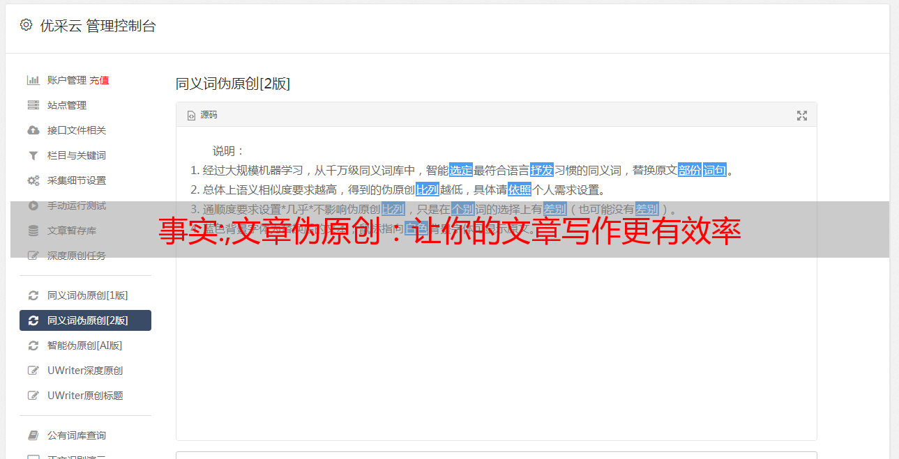 其次,要想使用好文章伪原创技术,你需要使用合适的工具。例如“优采云采集器”就是一款很不错的工具。它不仅能够帮助用户迅速找到所需信息并重写语句、语法、表达方式,而且还可以对重写后的文字进行检测,避免相似度太高考虑不周导致版权问题。此外该工具还能够帮助用户将图片、图标、表格和关键词都包含在伪原创中。使得最后生成的新闻、博客、PPT等都能够避免版权问题并保留原始性感。