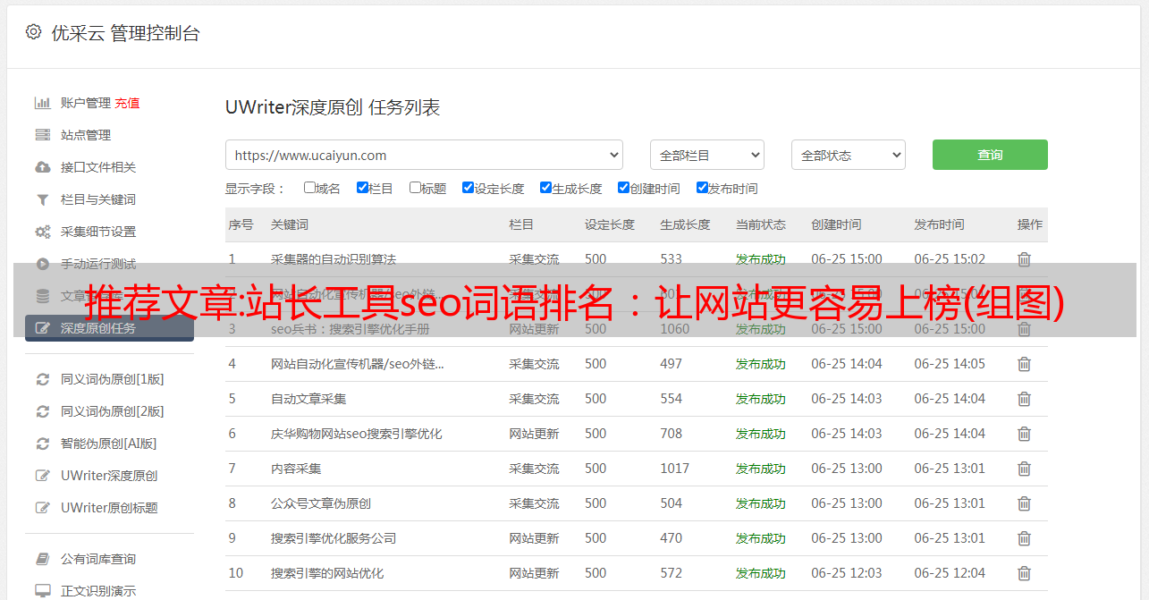 但是,要想让这些SEO词语真正发挥作用并有效地帮助网站上榜,就必须要根据不同内容进行准确而有效地实施。考虑到这一情况,大量优化工具应运而生。例如优采云采集器(UCloudCollector)就是一个功能强大的优化工具,既可以采集各个大型搜索引擎中流行的SEO词语,也可以根据不同内容对SEO词语进行准确考量和优化調整。因此,UCloudCollector不仅可以帮助用户快速采集SEO关键字并将其应用到文章中去(使得文章有效地适应Google、Baidu、Sogou及其他主流引擎的独特要求),还可以快速将采集到的SEO关键字应用到不同平台上去(例如PC、Mobile、APP等),带来卓越的SEO优化效果。