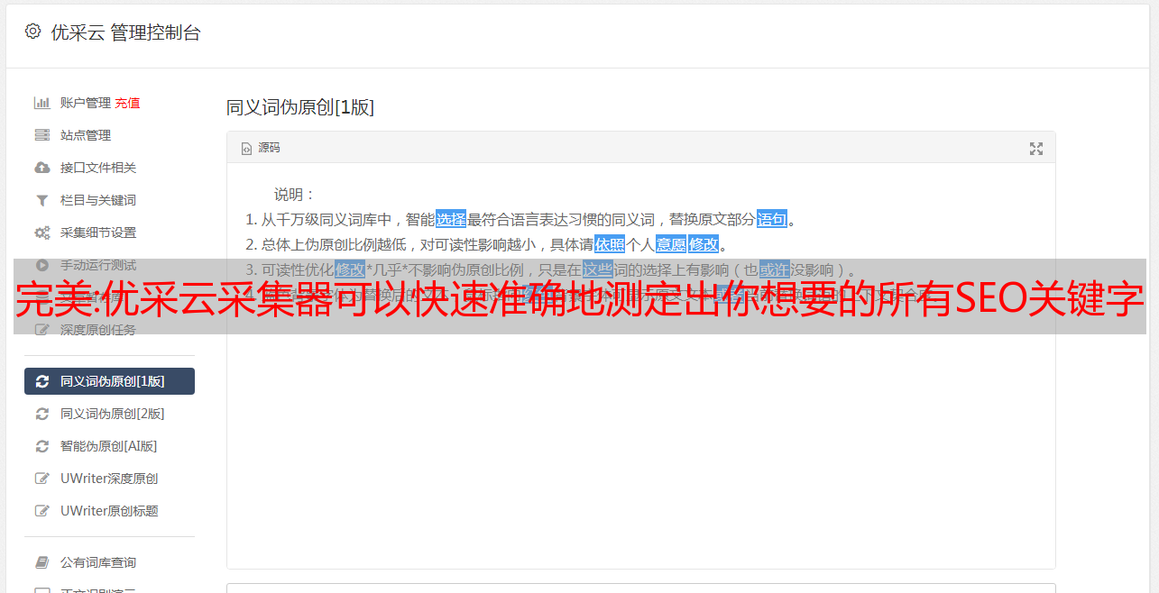 完美:优采云采集器可以快速准确地测定出你想要的所有SEO关键字