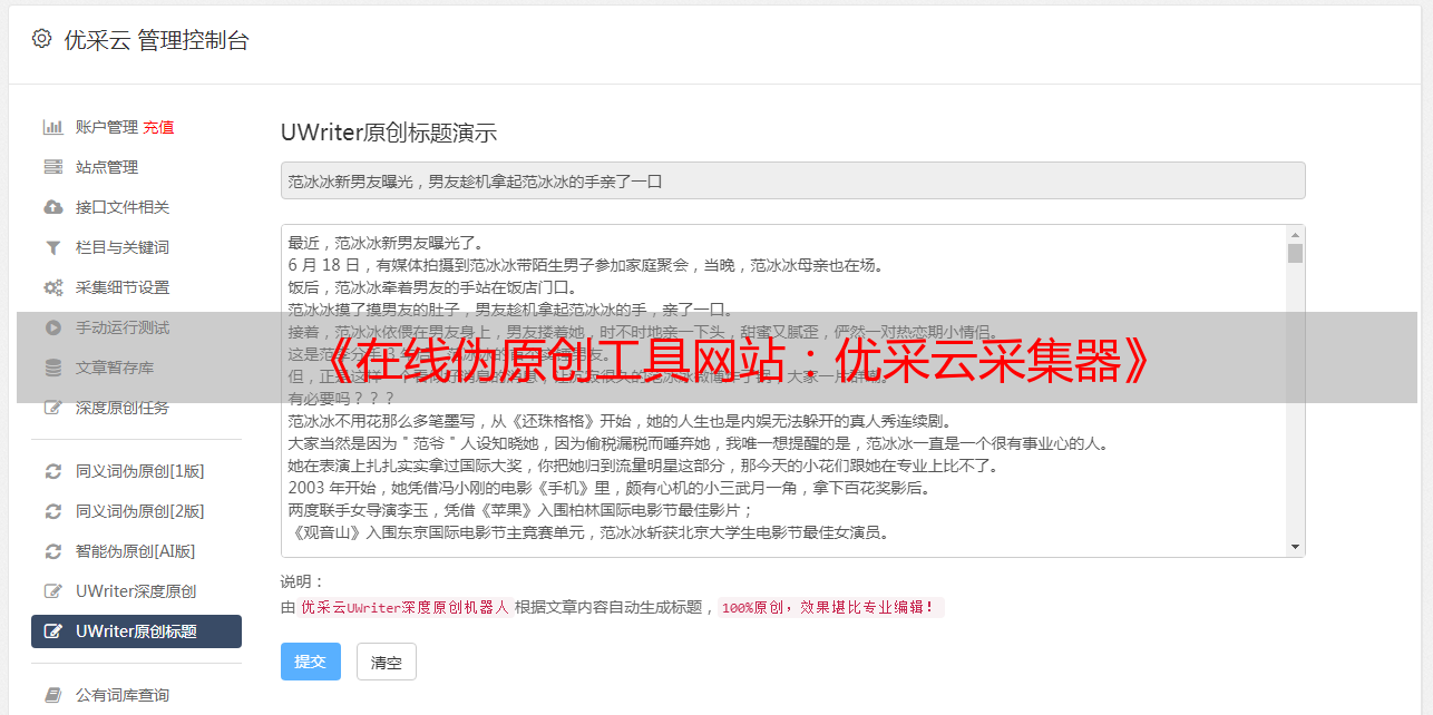 最后要说明的是,优采云采集器是一款在线伪原创工具,不仅功能强大、易于使用、安全可靠,而且价格合理。因此,我强烈推荐大家使用优采云采集器www.ucaiyun.com!