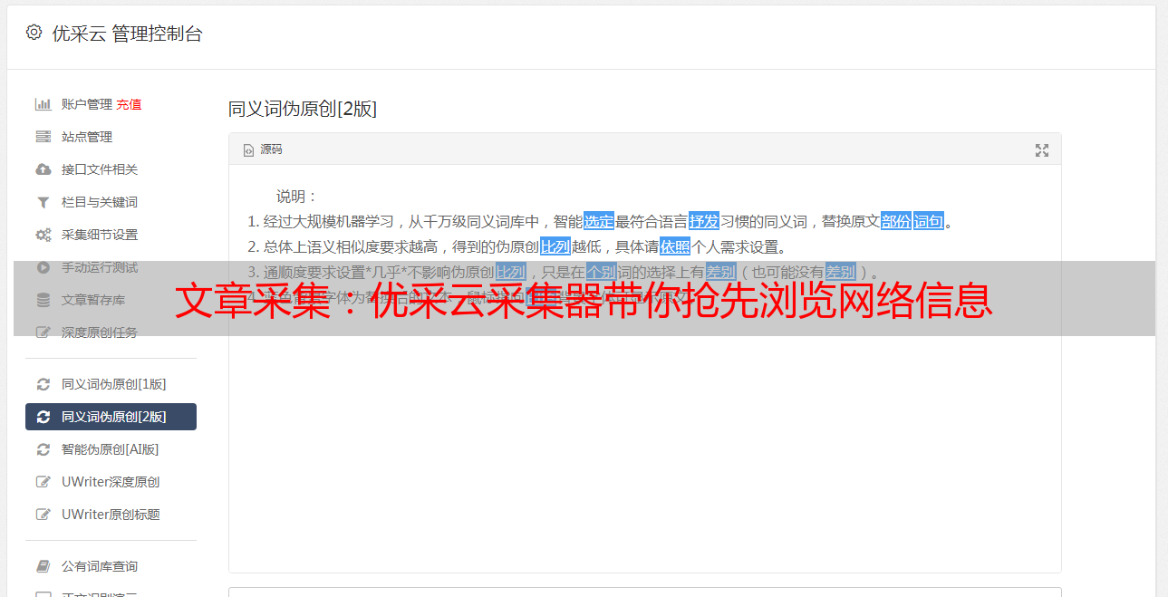 优采云采集器是一款非常强大的文章采集工具,它能够帮助用户快速而有效地从互联网上获取海量有价值的信息。优采云采集器不仅能够帮助用户快速搜索到相关信息,还能根据用户需要实时进行新闻和文章内容的采集。它能够快速而准确地将所需内容归入不同文件夹中,方便之后的使用。