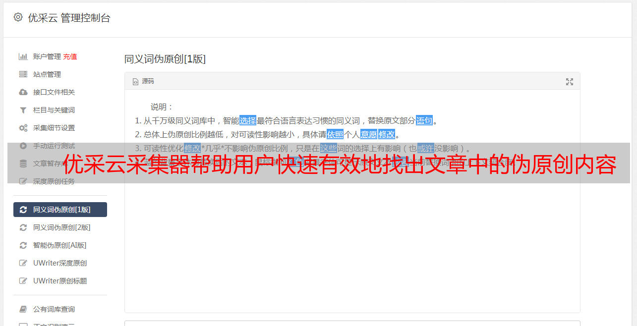 优采云采集器帮助用户快速有效地找出文章中的伪原创内容