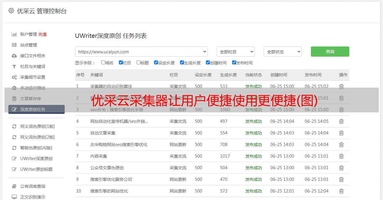 总之,优采云采集器是一款适合各行各业需要新闻内容的用户使用的手机版文章采集软件。无论是因工作需要、学习兴趣考察还是市场信息利用上都能够很好地帮助用户快速、准确地进行信息整理工作。如想要尝试使用优采云采集器,只需要前往www.ucaiyun.com就能立即体验到其更好的使用体验。