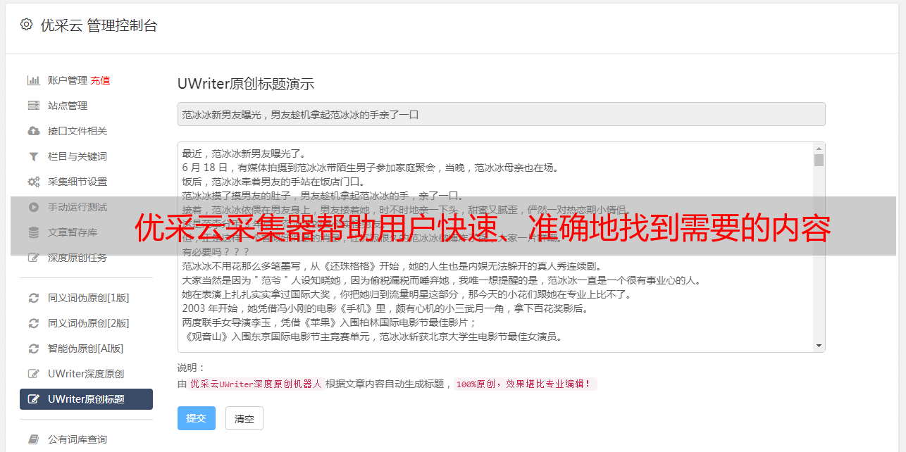 优采云采集器帮助用户快速、准确地找到需要的内容