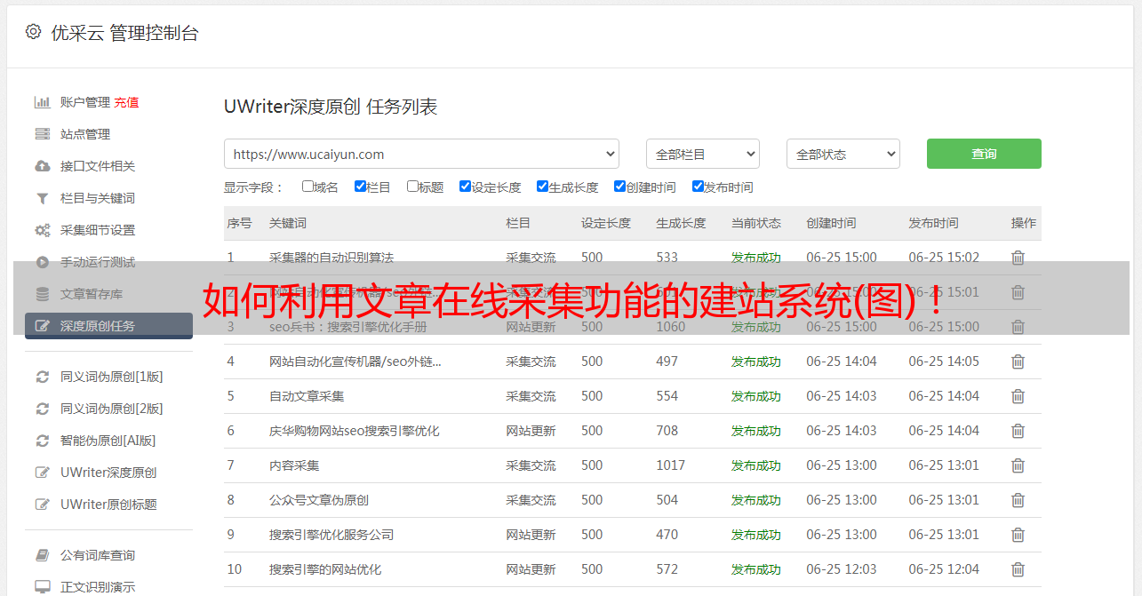 优采云 发布时间: 2022-12-28 15:21文章在线采集功能的建站系统