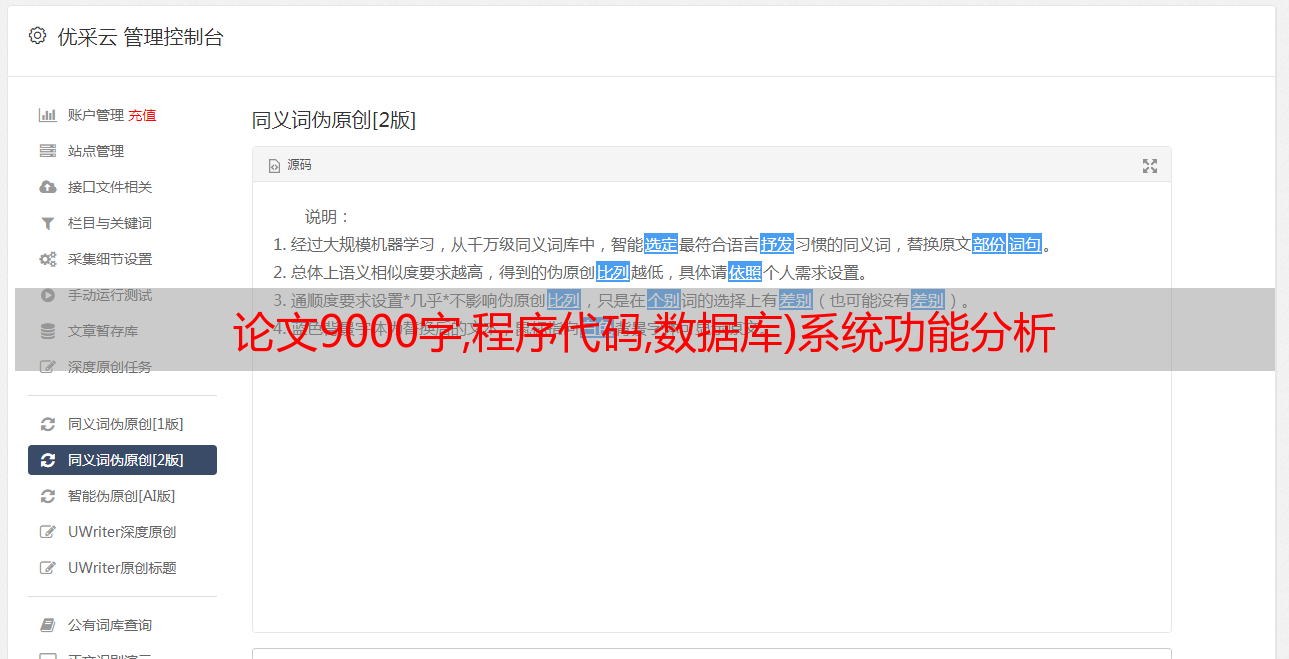 优采云 发布时间: 2021-05-31 20:06论文9000字,程序代码,数据库)系统功能分析