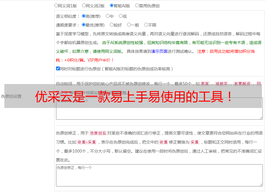 优采云是一款易上手易使用的工具:不仅对新手也对老手都十分友好——在使用之前仅需注册一个优采云帐号即可开始使用;使用方法也十分直观——直接将你想要表达出来的信息录入即可快速生成文章!