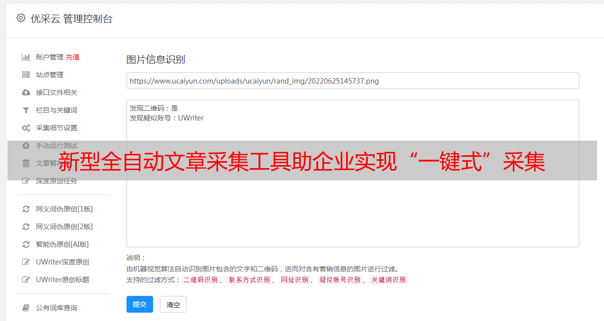 优采云就是为了解决这一问题而出现的新型全自动文章采集工具。它可以帮助用户快速、准确地抓取各类新闻、文章、图片、视频等信息,实现“一键式”采集。此外,还可以帮助用户实时监测*敏*感*词*市场行情及信息,有效协助企业进行市场分析判断。