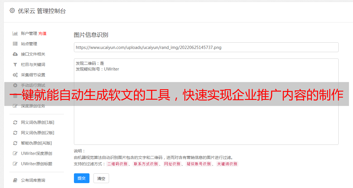 优采云是国内首个专业针对企业进行推广的软文自动生成工具,可以帮助企业快速、高效地实现推广内容的制作。使用优采云可以根据企业特性、行业特点、市场情况、用户需求、关键词等分析出新颖独特、有吸引力的推广文章。