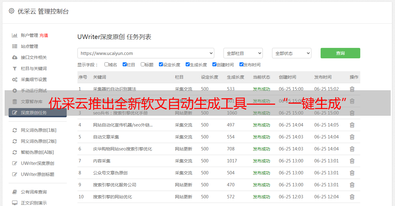 总之,“优采云”是一款能够快速、准确生成原创性内容、能够显著增强品牌形象的高端新型工具。不仅能够帮助企业快速、准确地将想法表达出来,而且也能够显著减少人员开销,带来明显效益,成为行业中最具竞争力和前瞻性的工具之一.如想体验“优采云”的独特功能,这就快速浏览它的官方网站www.ucaiyun.com吧!