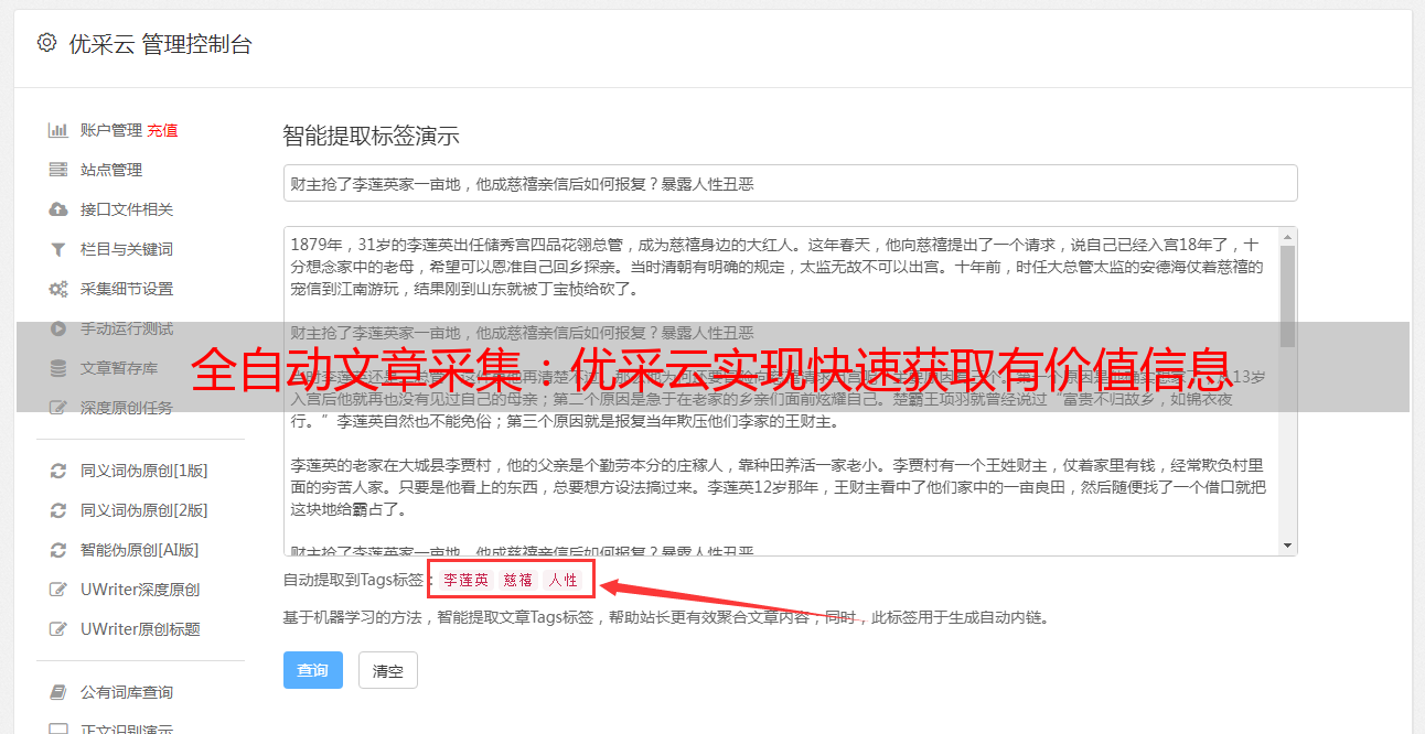 优采云 发布时间: 2022-12-29 04:15全自动文章采集:优采云实现快速获取有价值信息