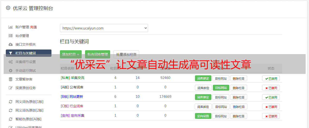 如果你正在寻找一款能够帮你快速而高效地生成高可读性文章的工具,那么“优采云”是你不二之选。不仅能够帮助使用者快速而高效地生成出高可读性、体现出作者思想特征的新内容;而且还能够有效解决日常写作过程中繁杂的重复工作。“优采云”是一款集AI、图像识别、人工校对三大功能为一身、十分强大而便捷易用的文章自动生成工具。如果你想要尝试一番“优采云”带来的独特体验:不妨前往www.ucaiyun.com快速注冊一个帐号并测试一番吧~