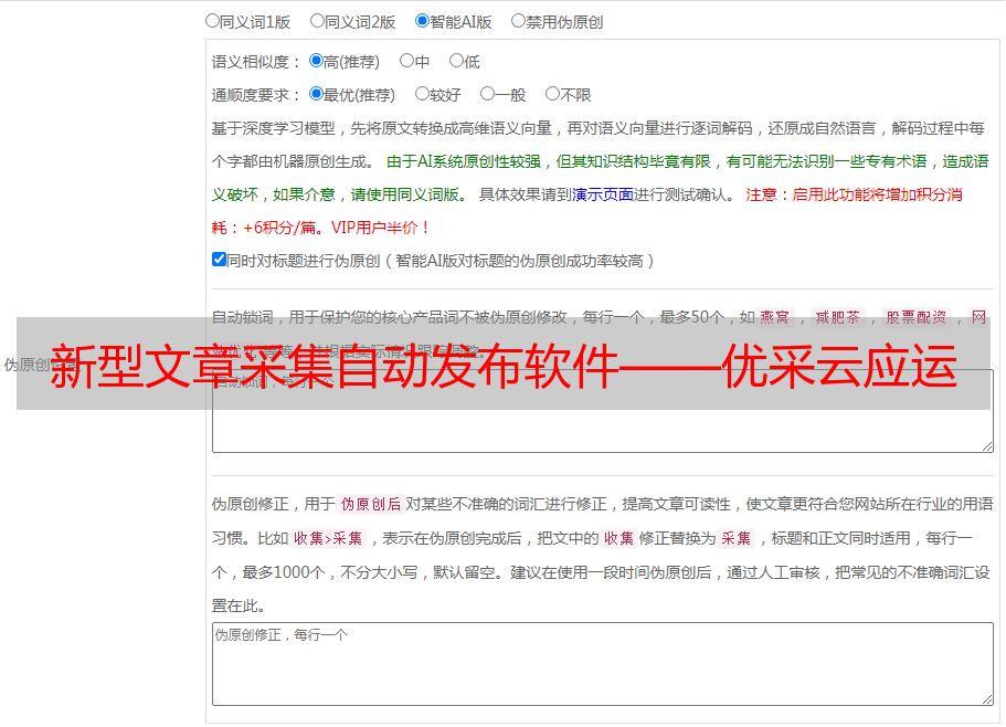优采云是一款具有强大采集、发布、语义分析等功能的文章采集自动发布软件,它能够为企业提供一套全面、快速、准确的采集和发布服务。它可以根据用户的需求,不断地从各大网站中寻找新的内容,并进行分析处理。它还能够根据用户情感分析内容中的情感信息,将分析出来的内容进行格式化整理后再发布出去。