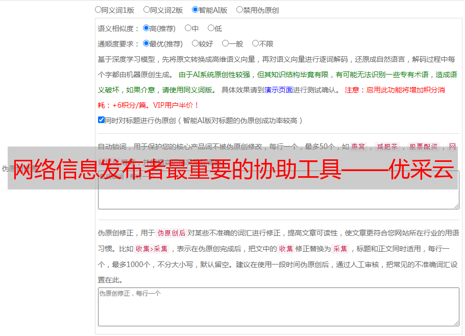 总之,优采云是一个强大而又实用的新闻/博客/图片/视频非人工化采集、内容强化和资讯平台发布的好帮手。它不仅能够将海量信息准确地呈现出来;而且也能将各种信息进行整理归类;各大平台也都有相应地集成方法来使得数据能够无障碍地上传和使用。如此强大而专业化的新闻/博客/图片/视频非人工化采集、内容强化和资讯平台发布工作必然是不少新闻/博客/图片/视频发布者必要考虑之选!此外优采云还将不断开发出各种功能来适应不同用户需要;也将努力为用户创造出一个低成本、高效玩快的“优”之“采”体验。想要了解更多优采亦想要体验真正意义上的“优”之“采”体验;就快去www.ucaiyun.com上看看吧~