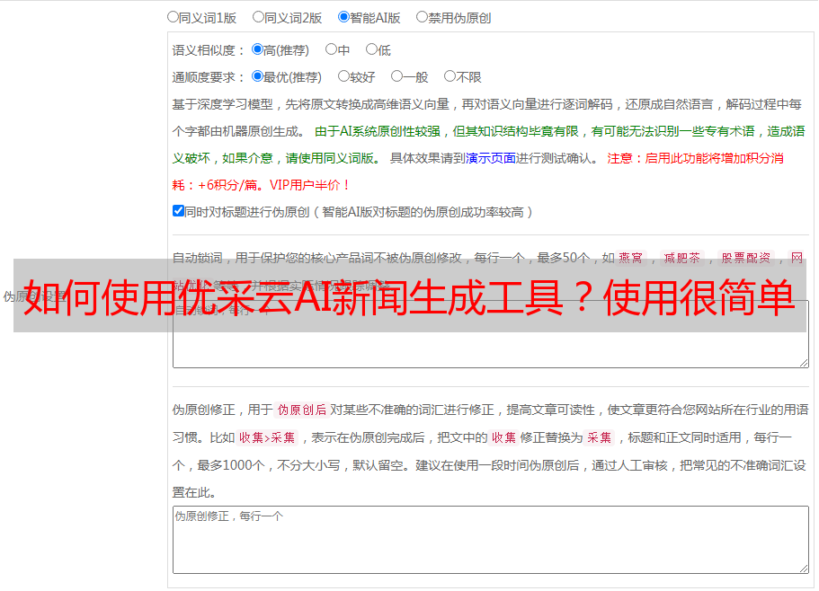 如何使用优采云AI新闻生成工具呢?使用很简单!只要浏览www.ucaiyun.com网站就能找到详尽说明书,这将是一步一步带你开始使用AI新闻生成工具,帮你助力商业发展,你一定不会后悔!不要再错过机遇,赶快来尝试一番吧!