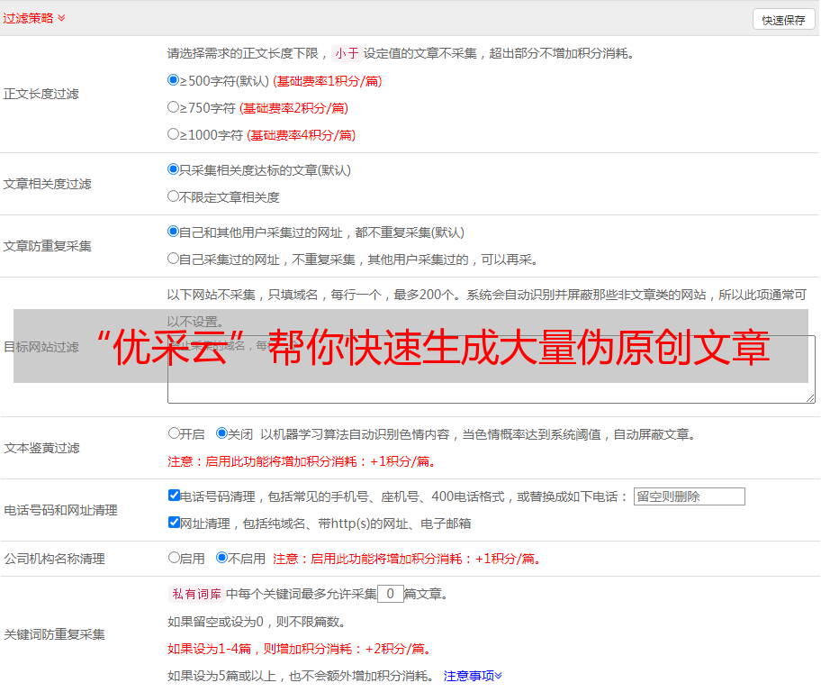 “优采云”帮你快速生成大量伪原创文章