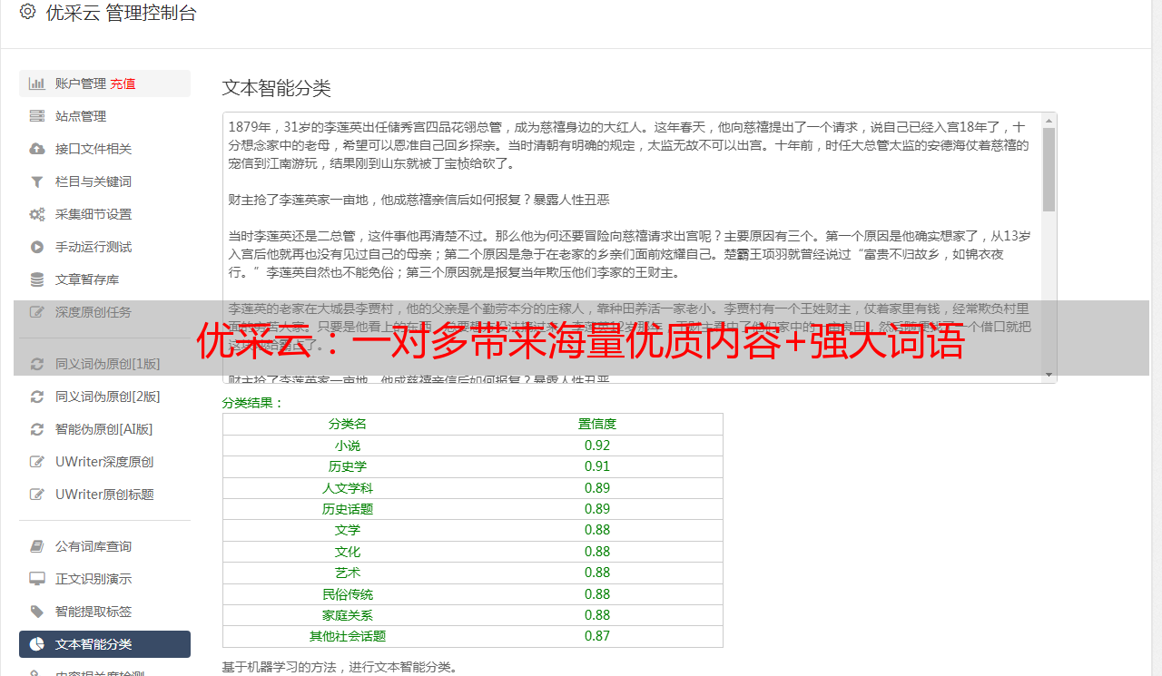优采云:一对多带来海量优质内容+强大词语