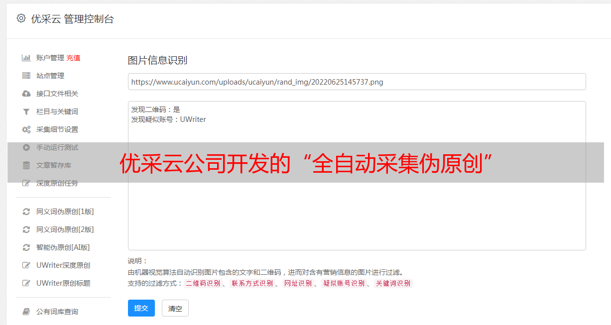 总之,使用优采云公司开发的“全自动采集伪原创”可以快速、准确、便捷地帮助用户实现原创要求。如果你想要在信息呈现上如一时之风、快速占领市场、快速赚钱,就不要再被版权侵权困扰了!想要了解“全自动采集伪原创”的看法、体验前所未有的强大工具、感受去中心化带来便利生意流程、意外惊喜尽在www.ucaiyun.com。