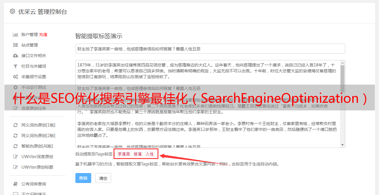 优采云 发布时间: 2021-06-01 07:35什么是SEO优化搜索引擎最佳化(SearchEngineOptimization)