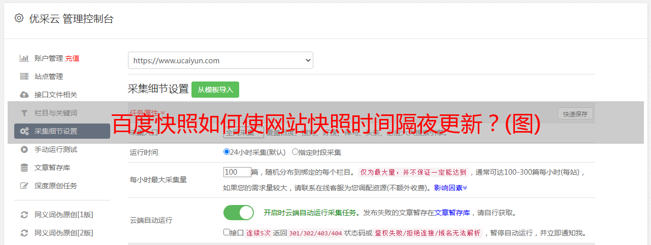 优采云 发布时间: 2021-06-01 19:28百度快照如何使网站快照时间隔夜更新?(图)