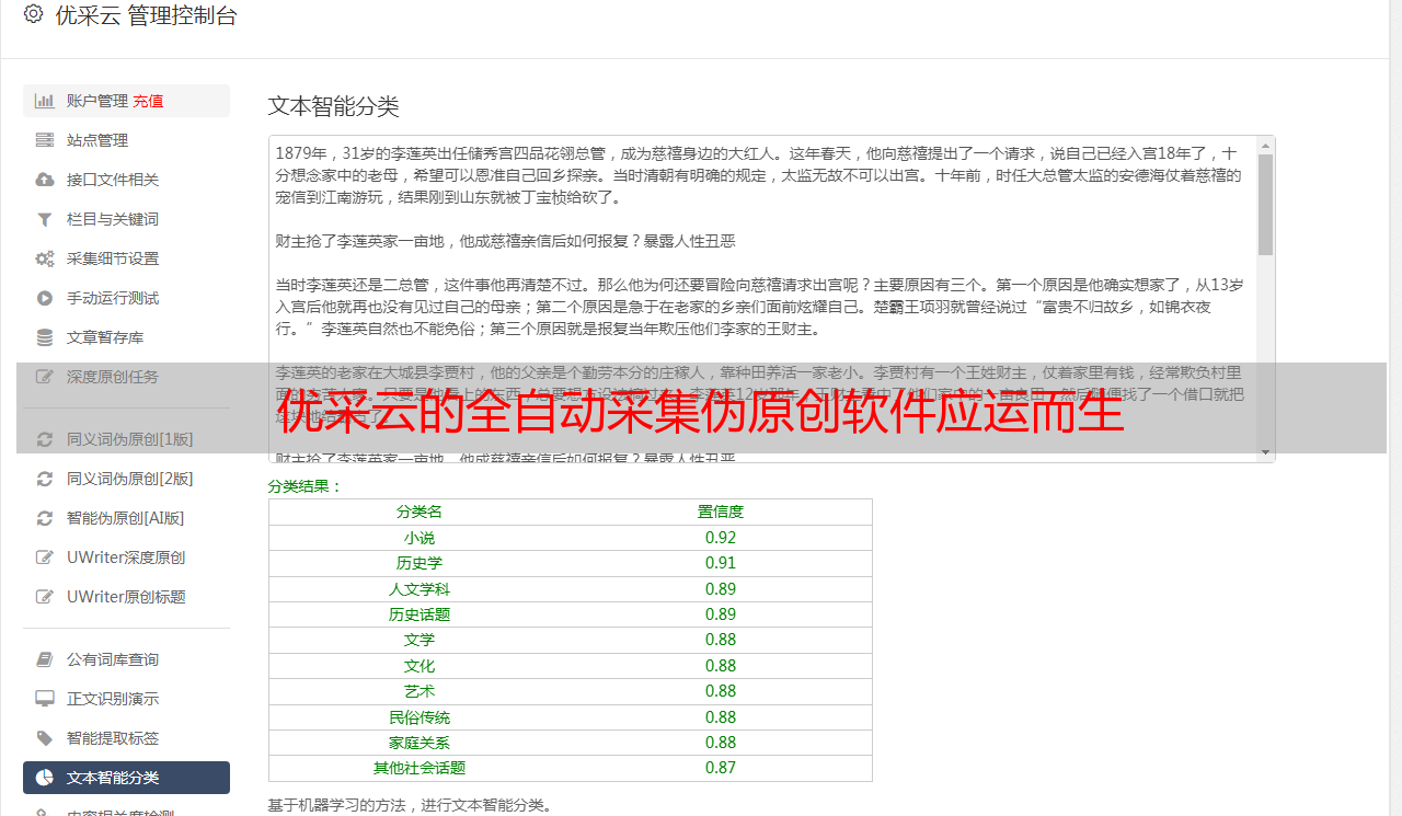 此时此刻,就有一款名为优采云的全自动采集伪原创软件应运而生。优采云通过大数据分析,能够从海量网站中快速采集便捷、优质的内容;并通过语义分析、关键词扩展等独特的语法处理方式快速实现一键式的伪原创功能。