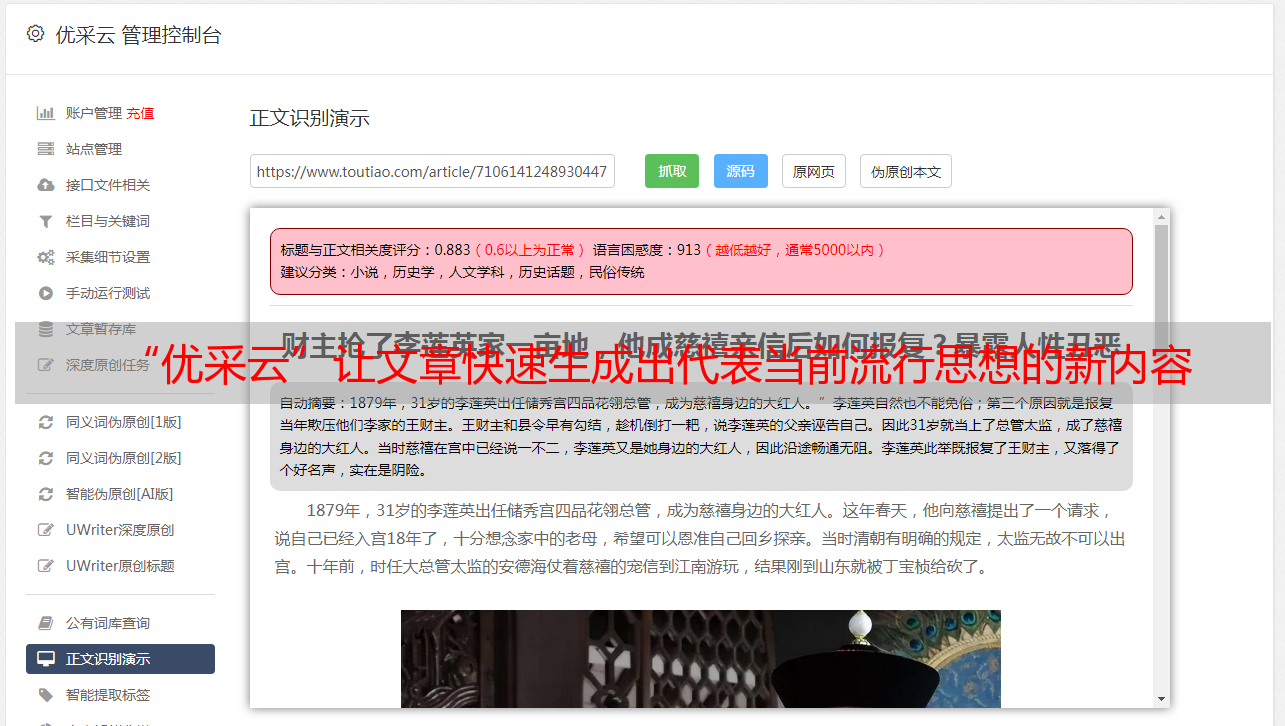 “优采云”让文章快速生成出代表当前流行思想的新内容