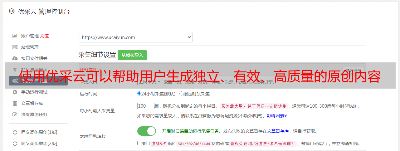 使用优采云可以帮助用户生成独立、有效、高质量的原创内容