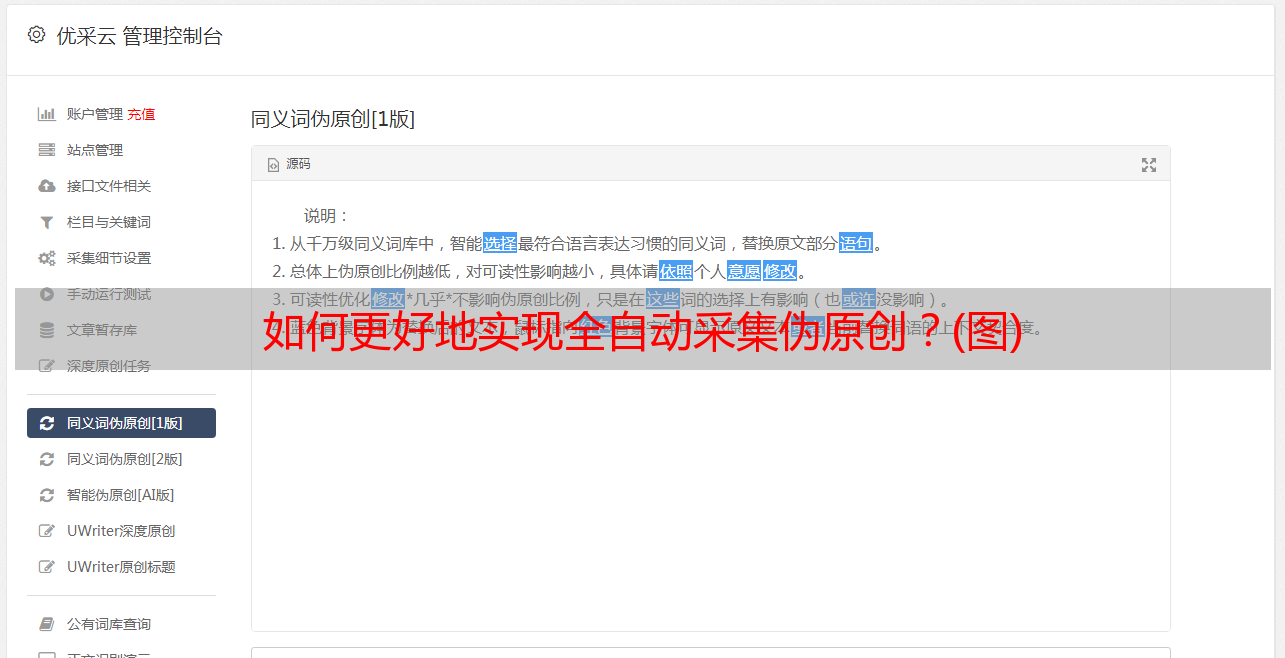优采云 发布时间: 2022-12-30 20:28随着互联网技术的发展,伪原创正在成为越来越多人推广内容的首选。然而,大多数伪原创工具都是手动操作的,在一定程度上影响了伪原创的效率。那么如何才能更好地实现全自动采集伪原创呢?