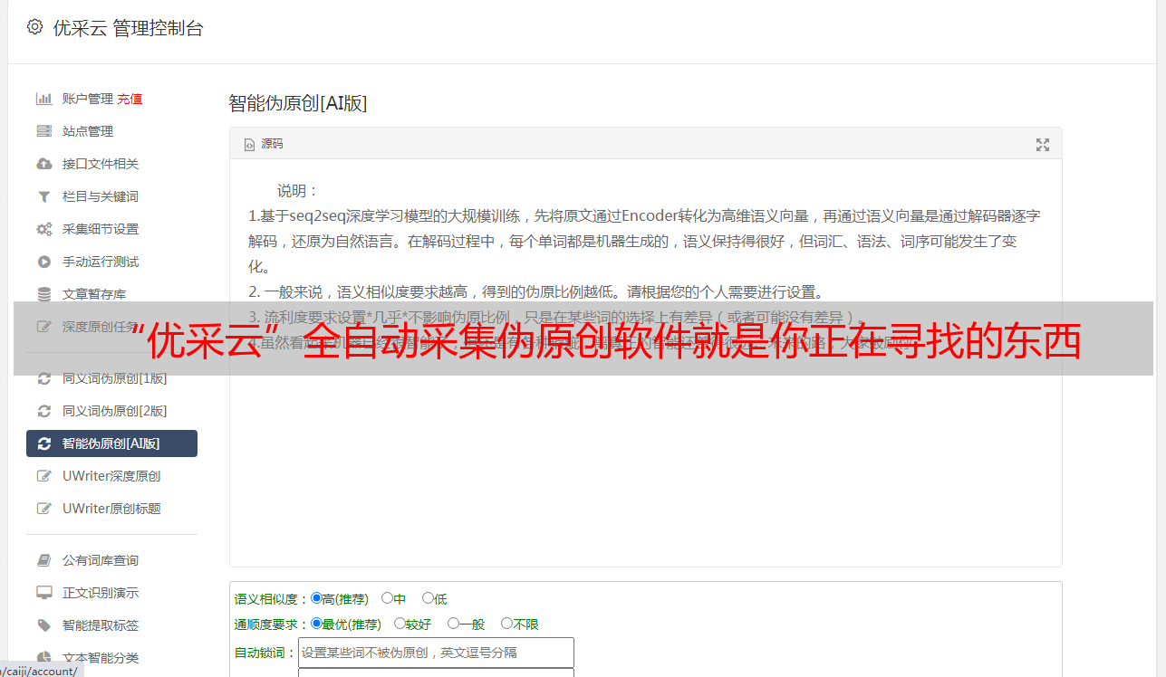 “优采云”全自动采集伪原创软件就是你正在寻找的东西