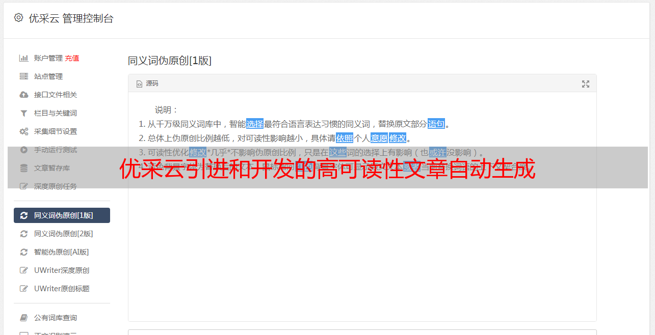 通过使用优采云开发的高可读性文章自动生成技术,用户不仅能够大大提升写作效率,而且还能保证所生成的文章具有高度的可读性和看上去很“自然”的感觉。因此,他们不必因为时效而浪费大量时间在写作上。