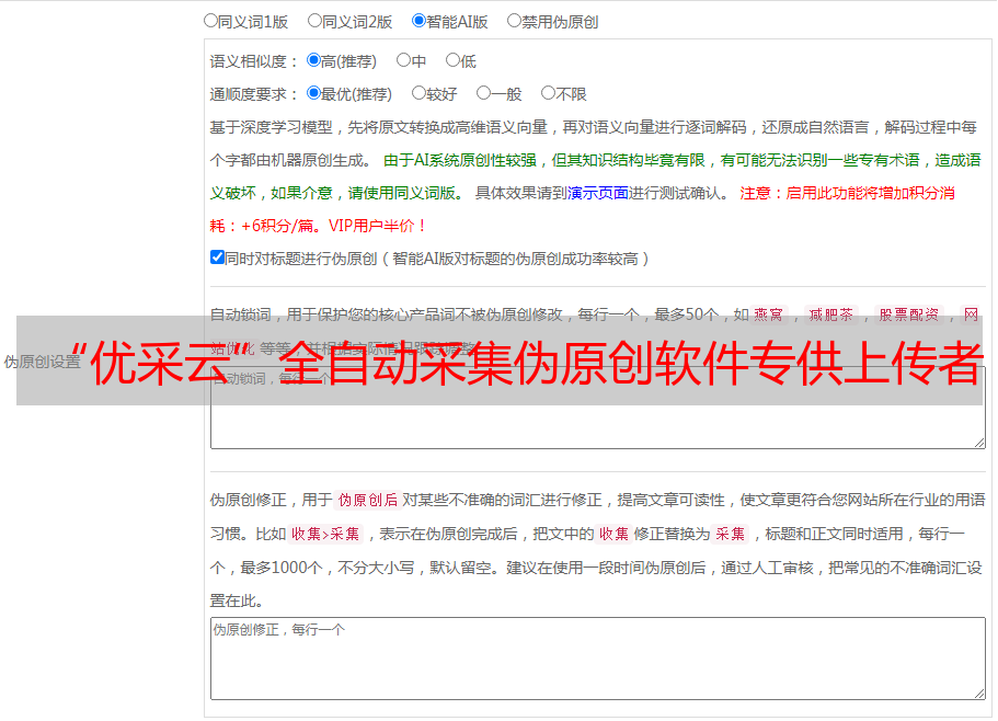 “优采云”全自动采集伪原创软件专供上传者发布文章