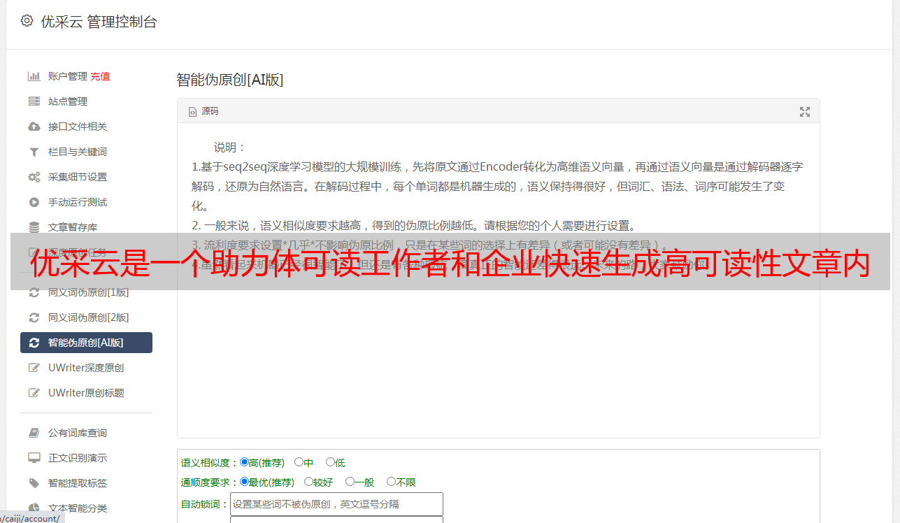 优采云是一个助力体可读工作者和企业快速生成高可读性文章内容的神奇工具