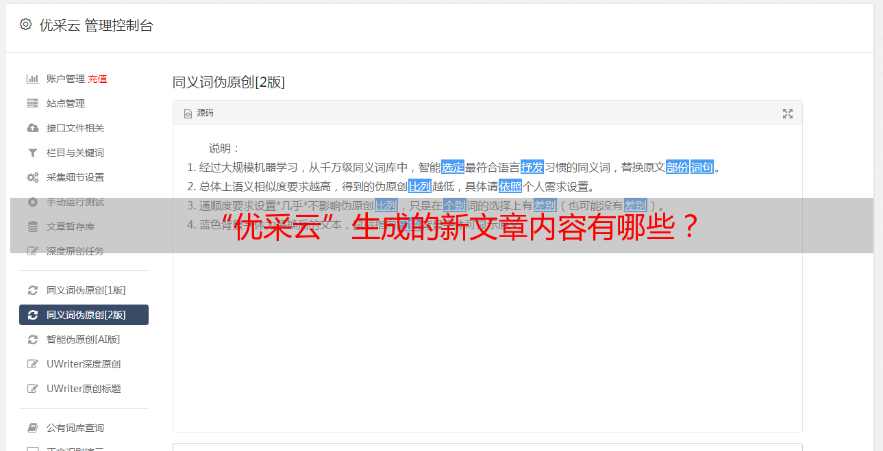 此外,“优采云”还具有强大的伪原创功能。它将根据用户所选取的原文章内容,使用语义识别和AI机器学习等技术对其改写生成不同版本的新文章内容;同时还能根据特定要求快速生成不少于三千字的新文章内容。而且相对于人工手动处理来说,“优采云”生成的新文章内容既有创意性又不易察觉出来是否存在原创和复制都有内容;也就是说它彻底解决了由人工手动处理带来低效性难以避免重复生成相似内容以及无法准确识别出原创和复制都有内容问题。