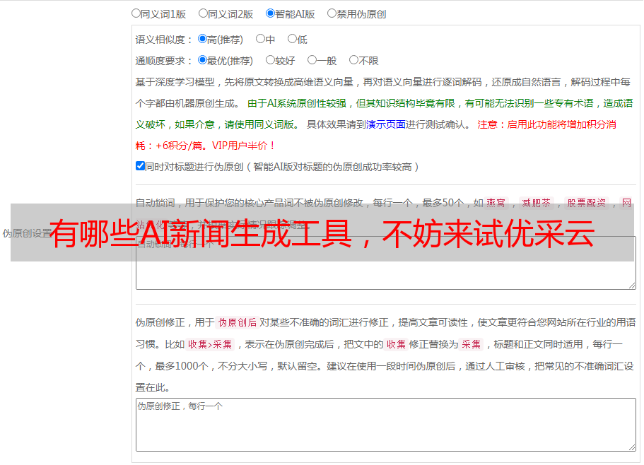 优采云是一款专业的AI新闻生成工具。它能够通过对原始数据的分析和处理,基于特定的内容语义模型快速地生成新闻文章。与传统的文章写作方式相比,使用优采云可以节省很多时间和精力,让你可以在有限的时间内实现更多内容发布。