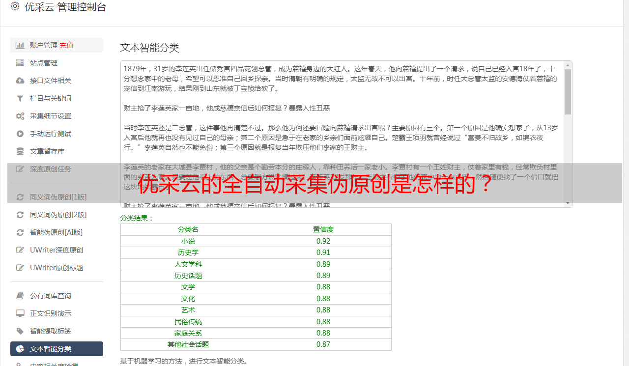 使用优采云全自动采集伪原创就是一件非常容易的事情。只需要在软件中输入要生成新文章的关键字、主题或标题,就可以让软件把所有相关信息进行整理,形成具有独特性和原创性的新文章。而且,该软件还能够帮助用户快速地生成多个版本、形式各异的新内容。