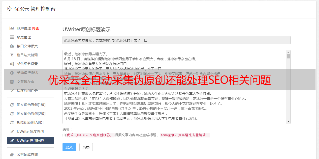 优采云全自动采集伪原创还能处理SEO相关问题