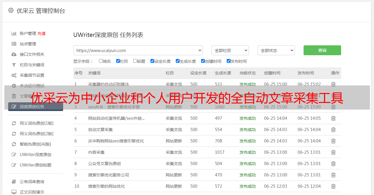 优采云为中小企业和个人用户开发的全自动文章采集工具