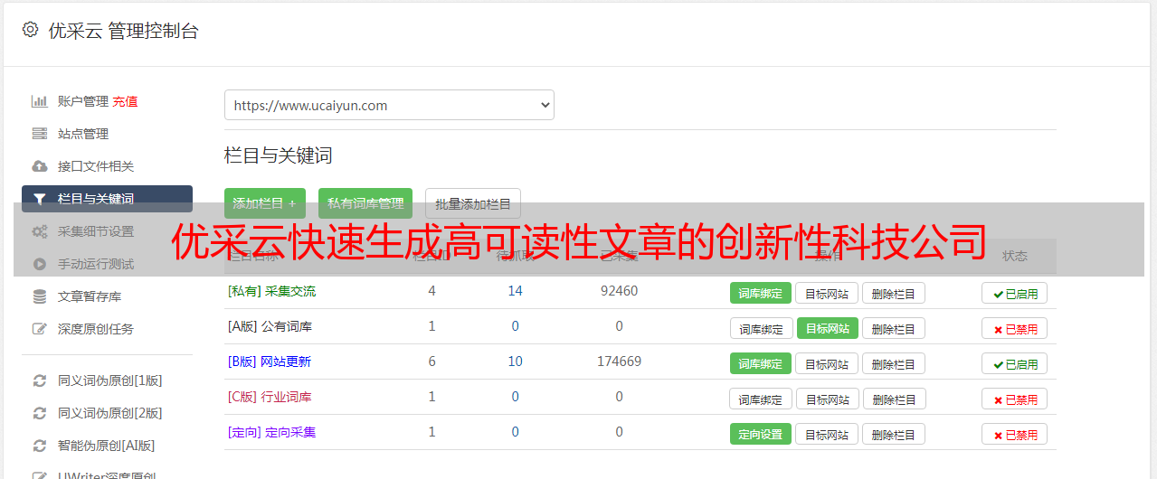 优采云是一套易于使用且十分有效的“新型”自动化工具:能够帮助用户快速生成原创性新闻内容;能够根据不同语义特征对特定内容进行归类整理;能够在海量信息中准确找出所想要的内容;能使用大数据引擎对一些来自真实文章中的字词进行合理组合,快速生成出原创性新闻报道、评论分析、市场分析、专业介绍等高水平文章;能处理大量语言数据-快速有效地帮助用户处理大量资料;能使用人工智能,机器学习,大数据分析,自然语言处理相结合.