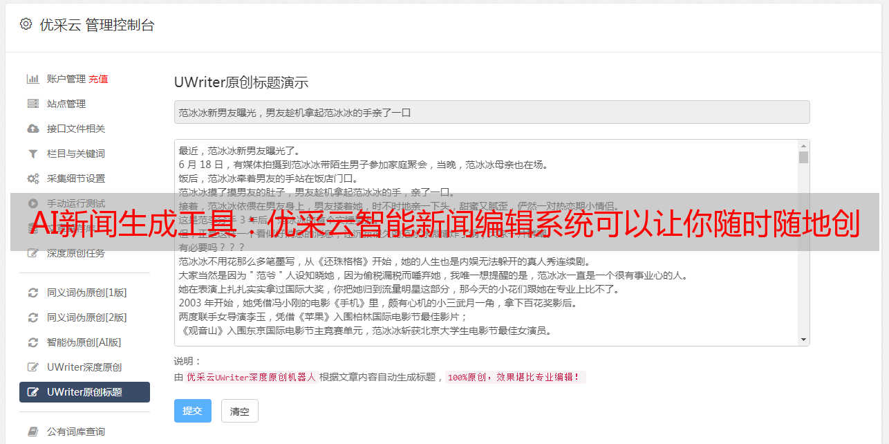 AI新闻生成工具:优采云智能新闻编辑系统可以让你随时随地创建有趣话题的新闻报道