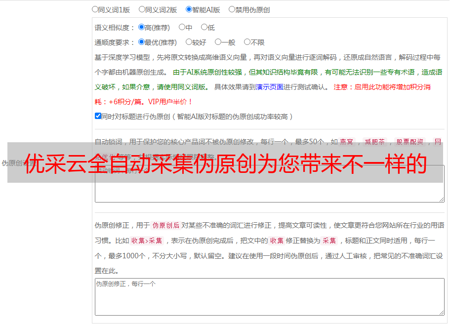 总之:使用优采云全自动采集伪原创不仅可以节省大量时间和人力对原创新闻博文的手动制作,各项功能强大也能保证生成出来的内容准确性和版权保障。www.ucaiyun.com 带来不一样的新体验和感受!