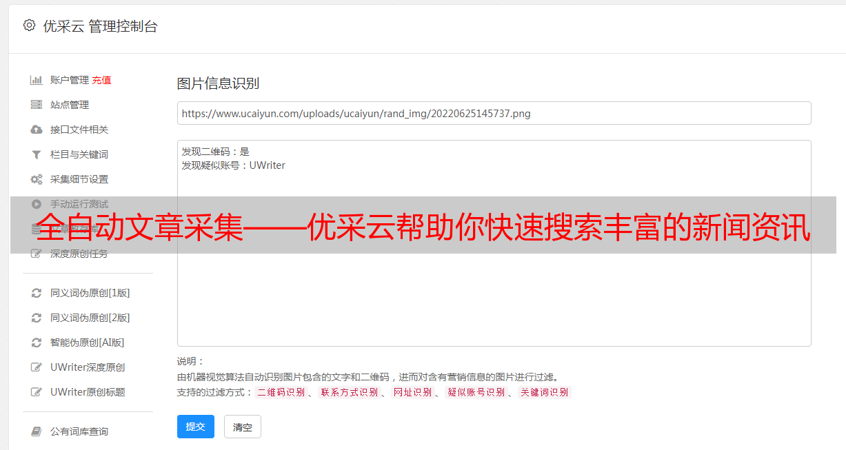 此外,优采云还能够帮助用户快速、准确地获取大量新闻资讯。它内置了强大的新闻采集引擎,可以根据用户需要进行定制化、根据时间、地域条件等各方面进行信息采集。此外,还内置了一键语义分析功能,可以即时检测到不合规信息并拦在最前端;同时使用独特的AI语法分析机制来保障生成内容的准确性、真实性和有效性。