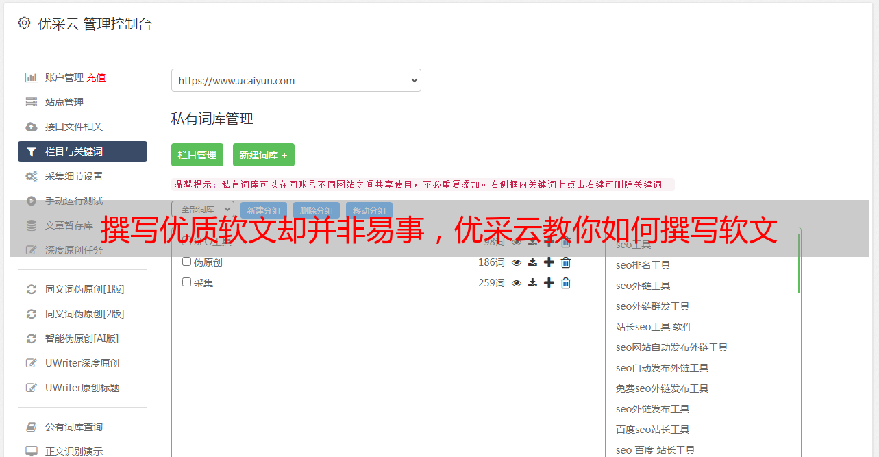 优采云(www.ucaiyun.com)是一款用于自动生成软文的工具,能够帮助用户快速撰写出一篇丰富内容的、诱人的、情感化的文章,从而有效地将品牌信息传达给更多的受众。